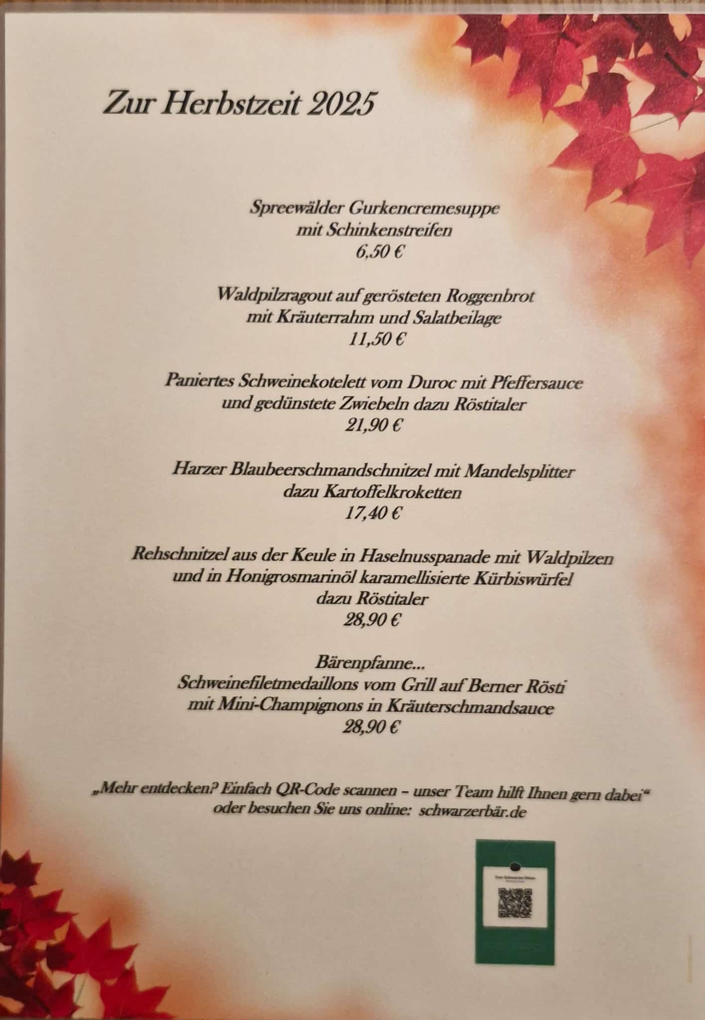 Die Karte ist nicht zu groß , die Speisen waren außerordentlich lecker. Zusätzlich gab es eine saisonale Karte die einige echt spannende Kreationen wie das „Blaubeerschmand-Schnitzel enthielten, welches auch sehr lecker war. Wir waren allesamt sehr zufrieden und werden wieder kommen. Chapeau !